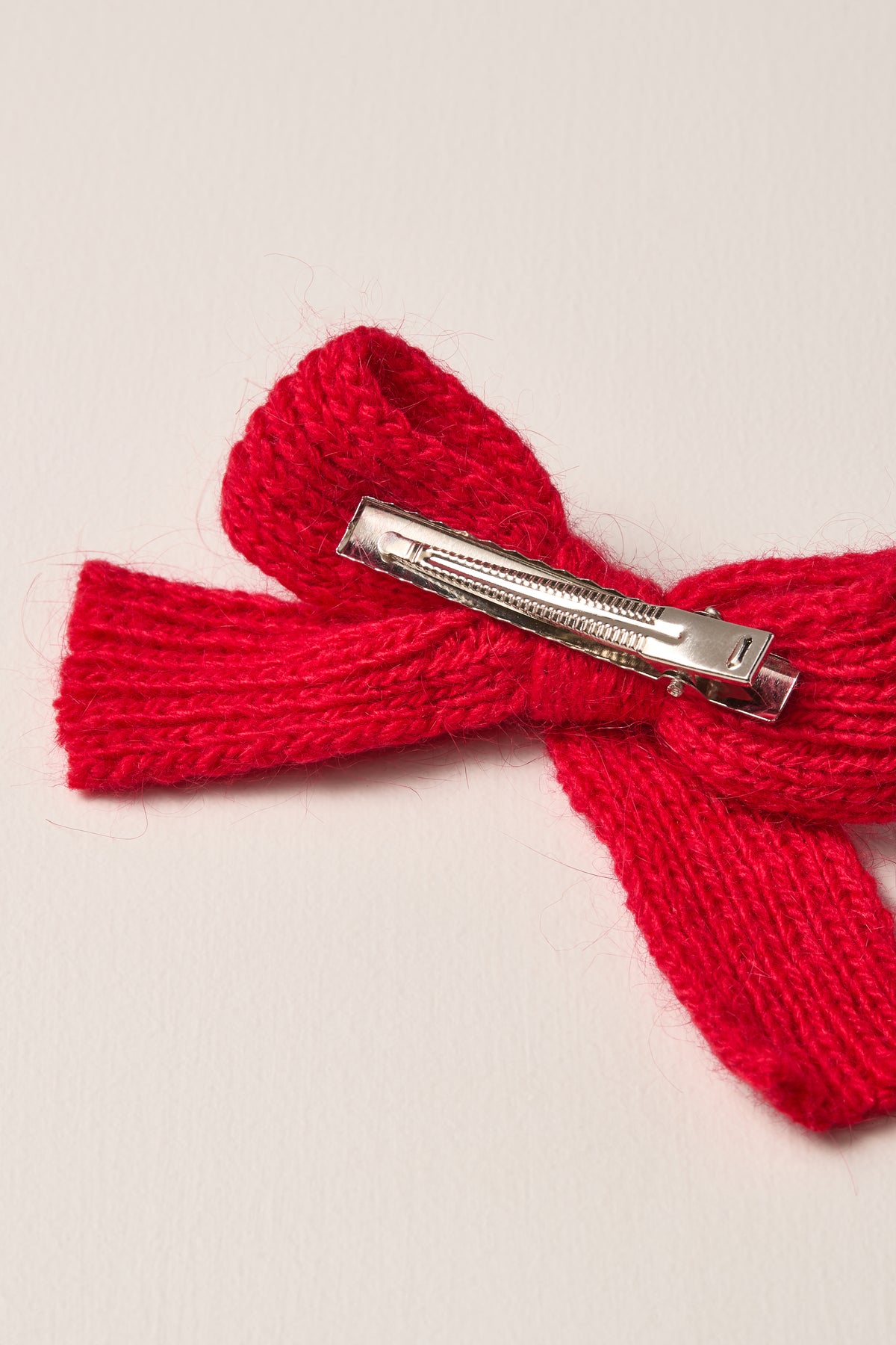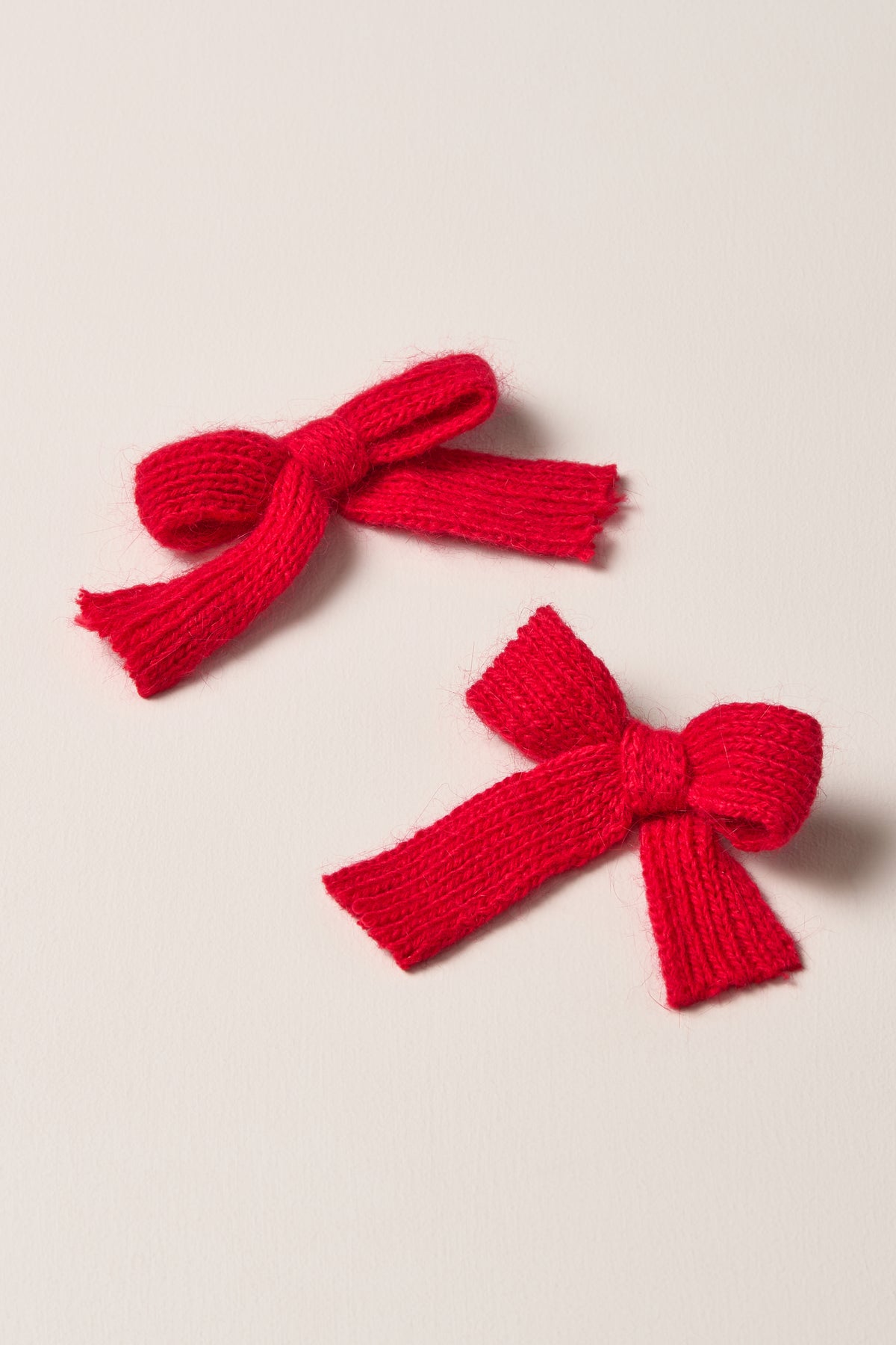 Add a warm and elegant touch to your hairstyles with this set of bow hair clips, crafted from red ribbed knit fabric.