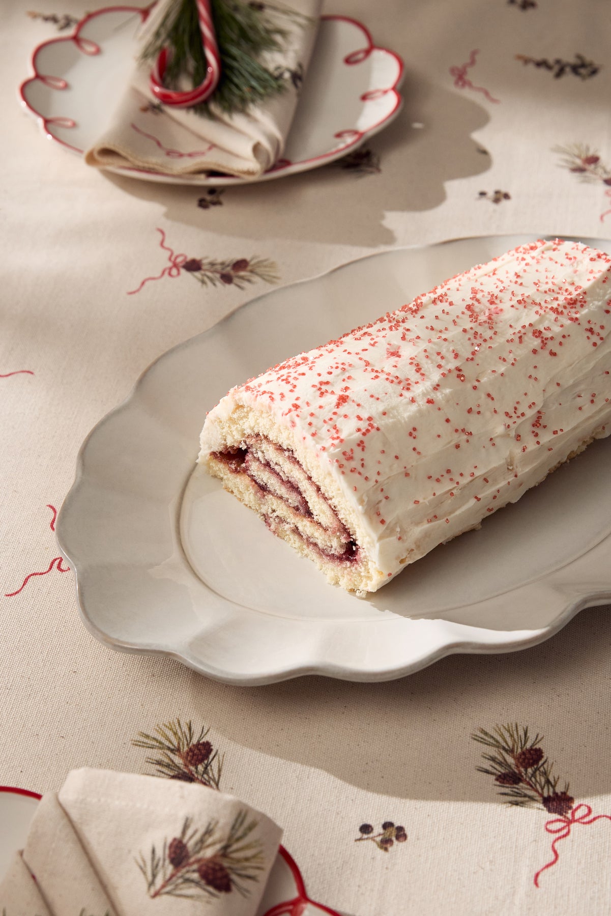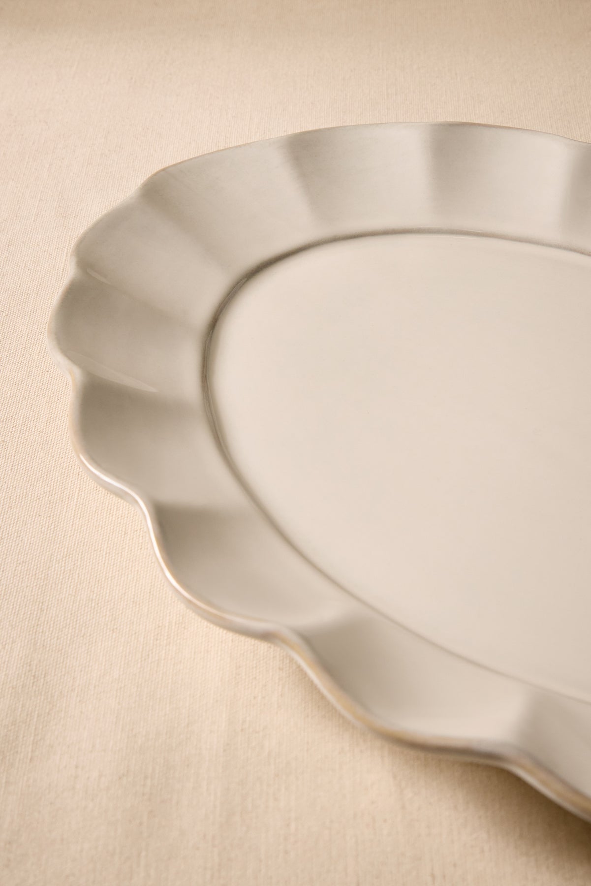 Add a touch of elegance to your festive meals with this stylish serving plate featuring a scalloped edge, perfect for displaying your favorite dishes in style.