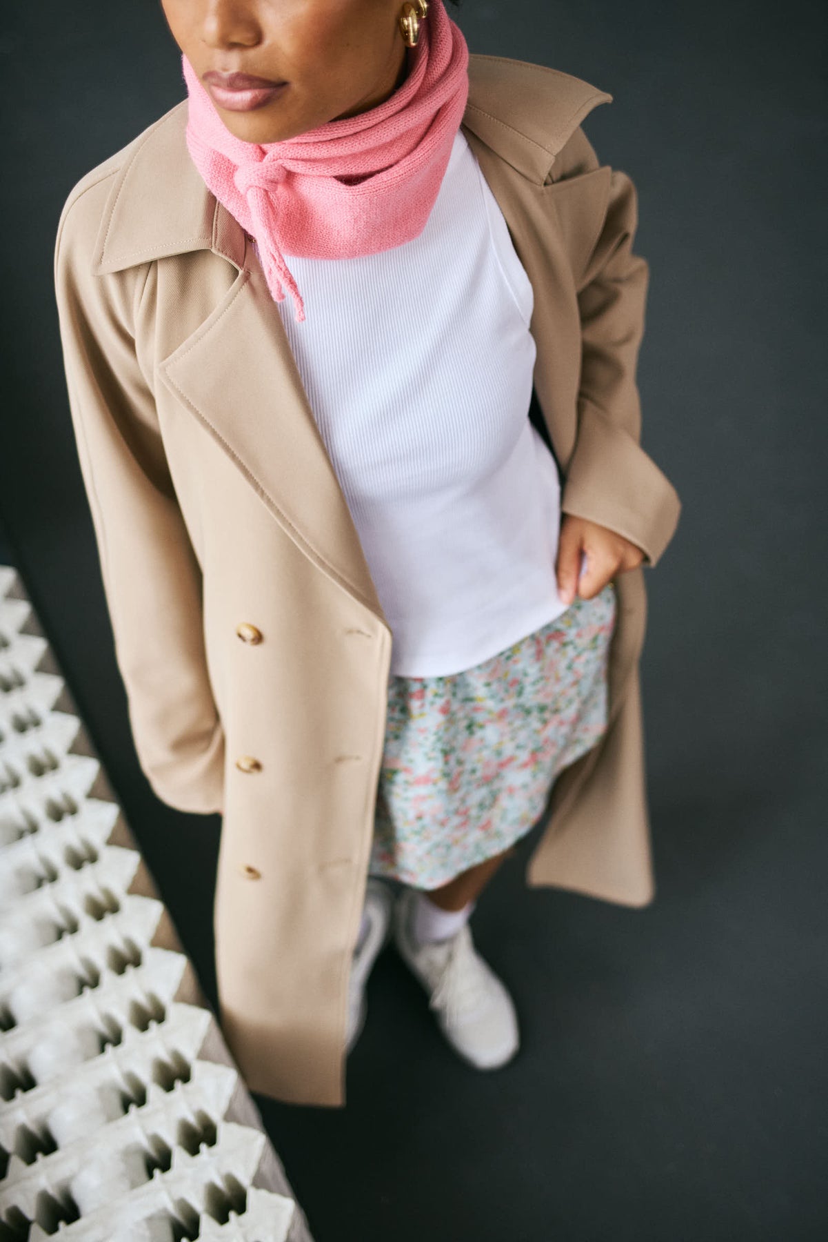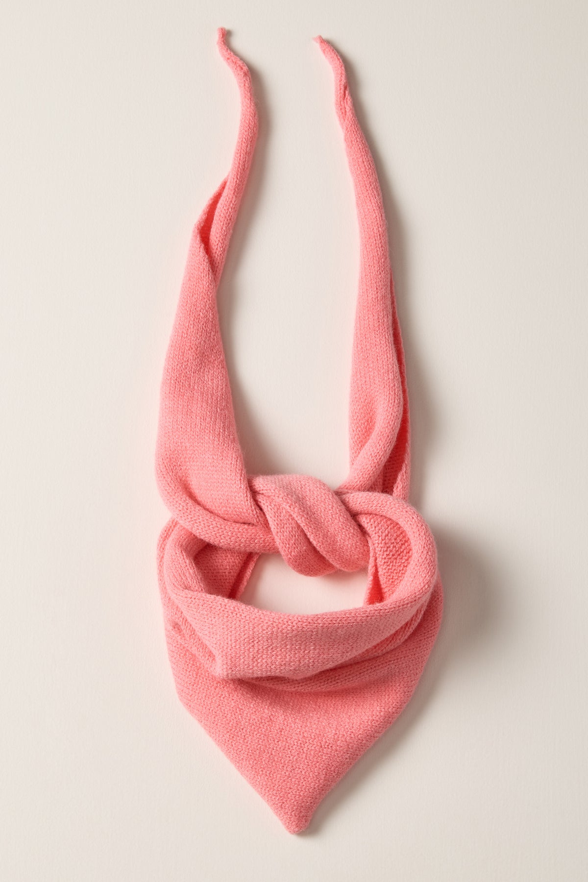 This 120 cm triangular knit scarf provides cosy warmth and can easily be tied around the shoulders or neck to add structure to your outfit.