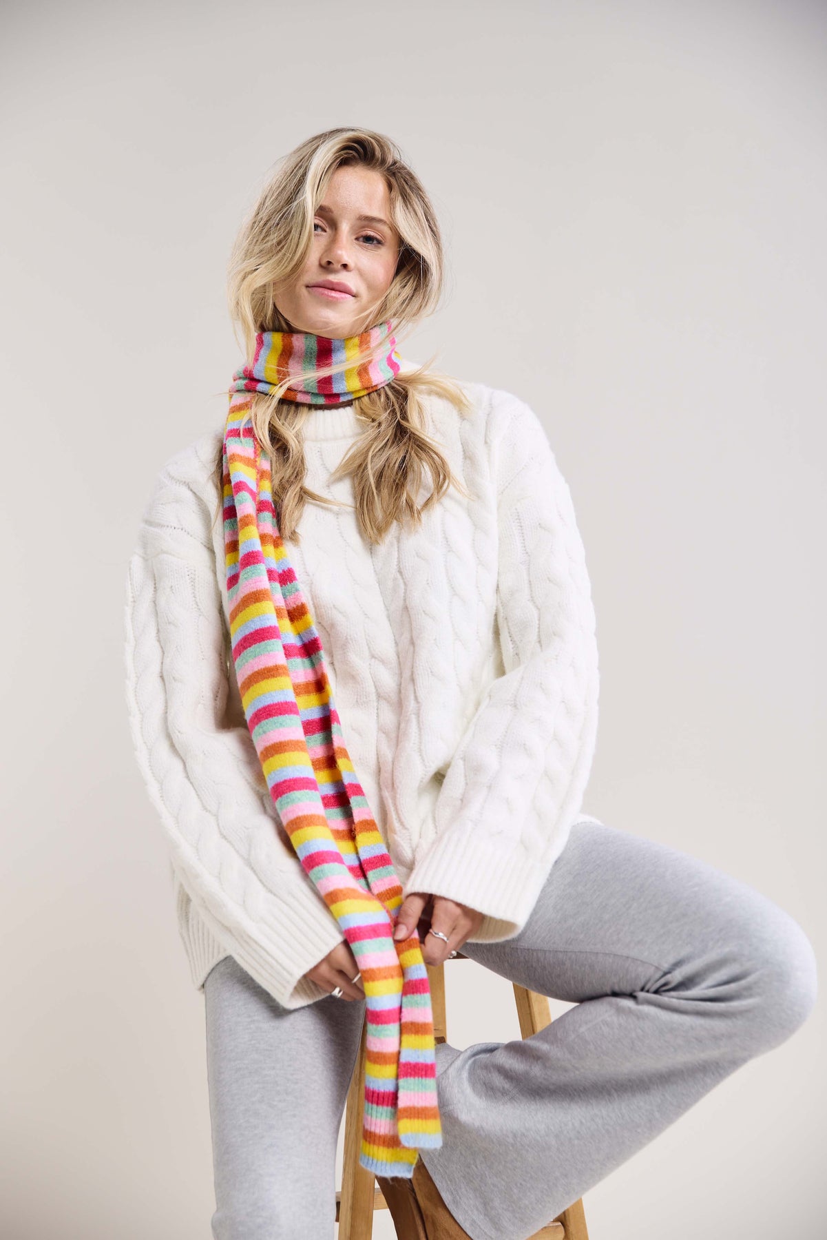 Ce foulard chiné à rebord côtelé apporte une touche de texture et d’originalité à vos tenues. Doux et confortable, il se porte facilement autour du cou.