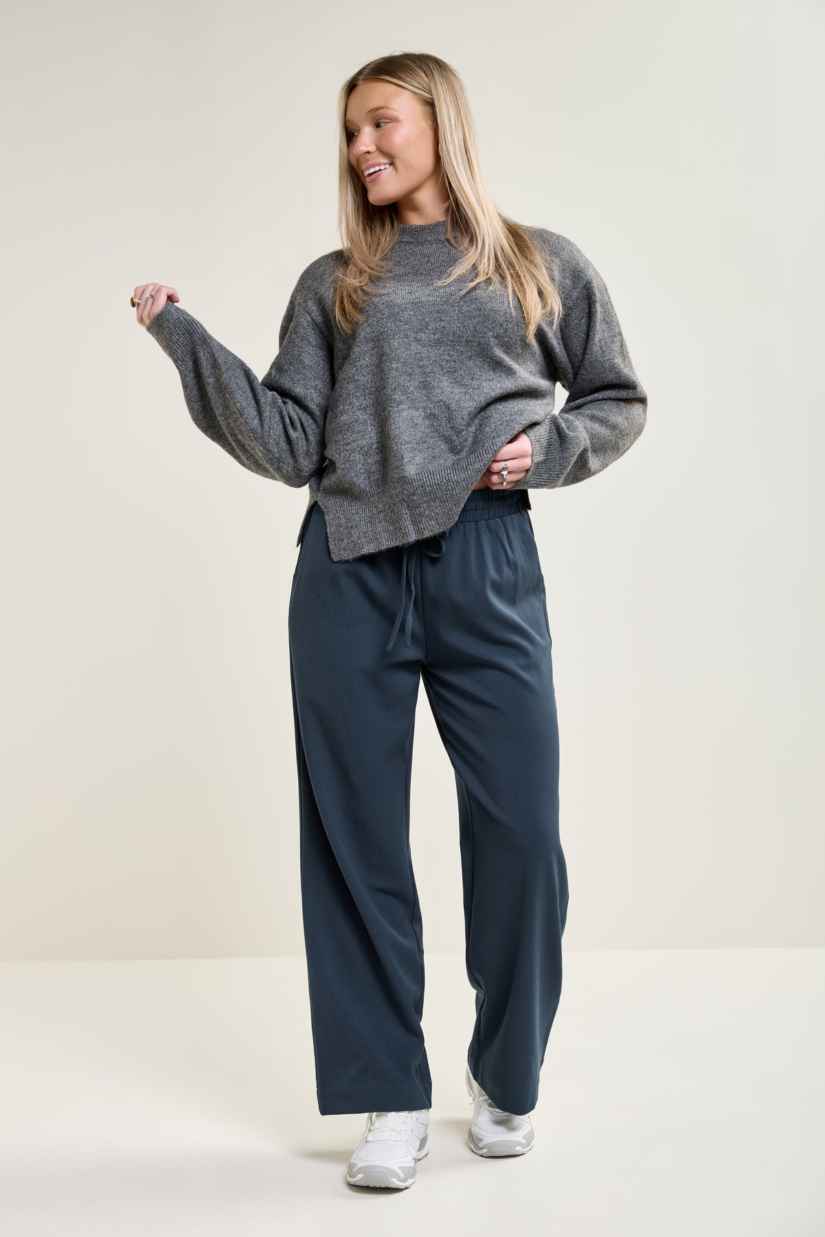- Wide elastic waistband with drawstring