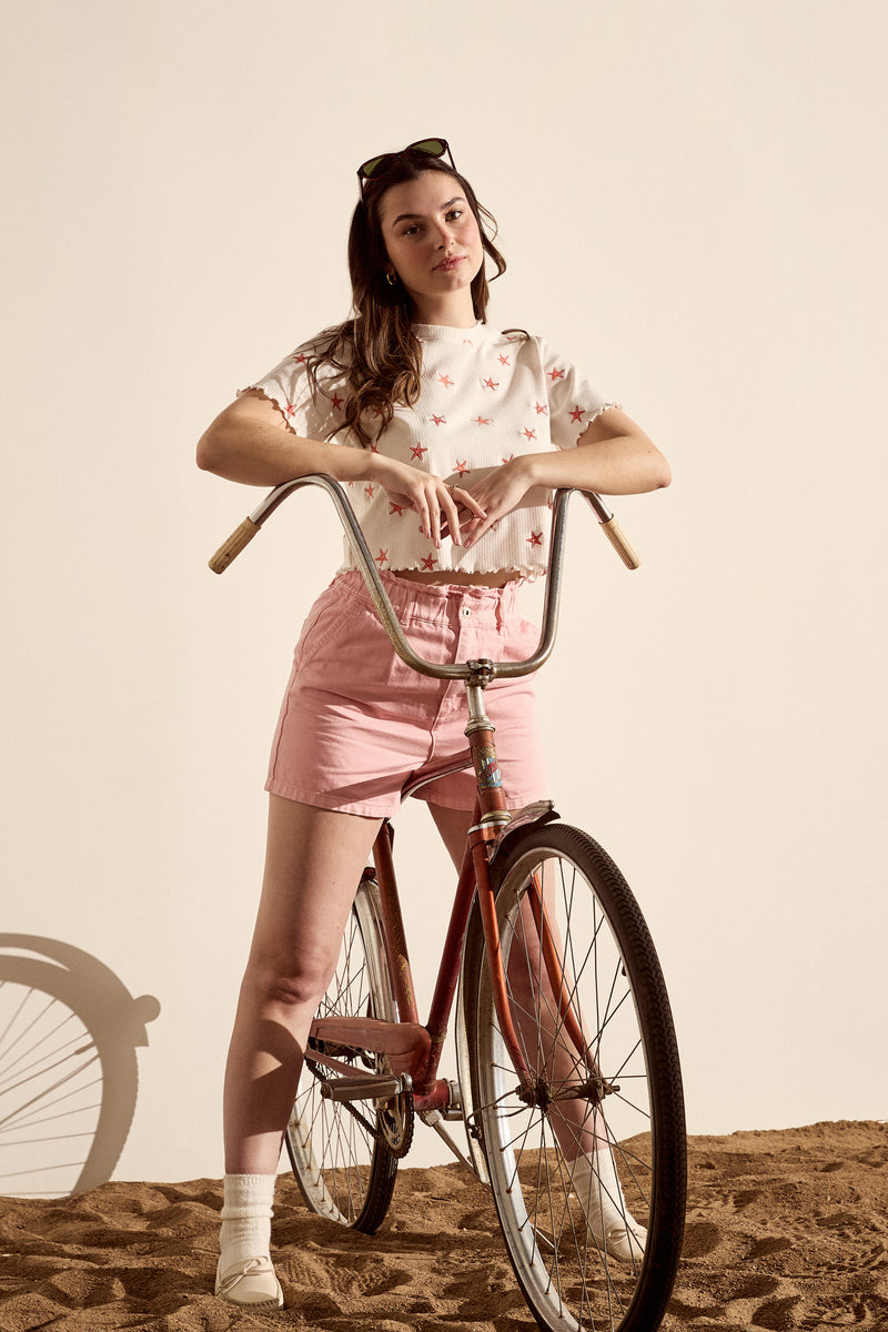 - Denim shorts in comfortable loose fit