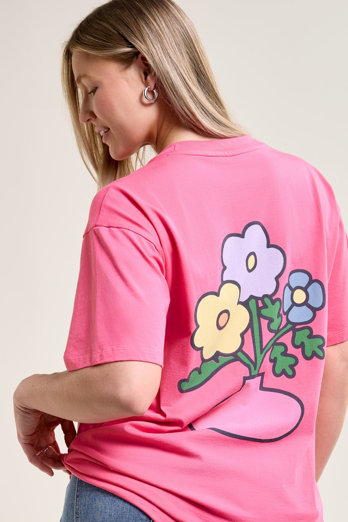 This ultra-soft t-shirt stands out with its floral print on the back. Wear it with leggings on a relaxing day or tucked into jeans for an outing with friends.