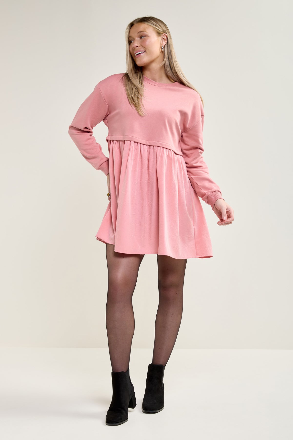 This flowy, long-sleeved mini dress is perfect! Comfortable and stylish, this dress is sure to be an instant favourite!